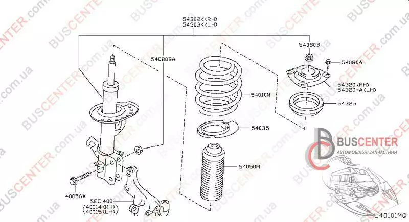 Амортизатор передний левый (стойка левая) Nissan Leaf E43033NA0C E4303-3NA0C