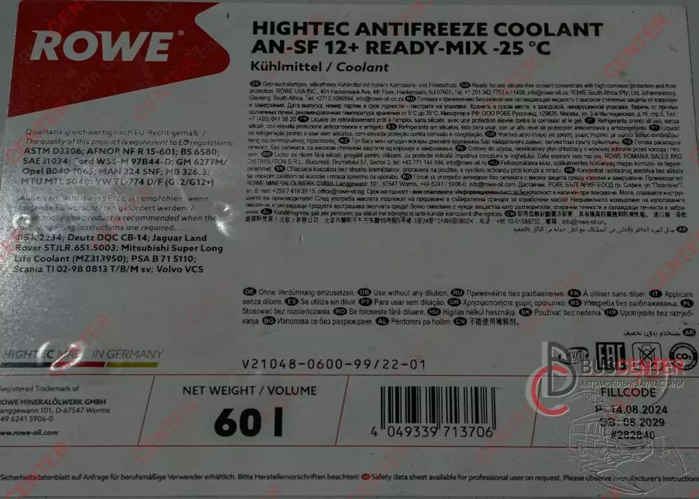 Антифриз -25°C 0.5 л фиолетовый G12+ Fiat Ducato G 012 A8F A1 21048-0600-99