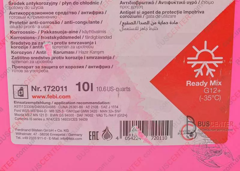 Антифриз -35°C 10 л G12+ (тосол "фиолетовый" G12+) G 012 A8F A1 172011