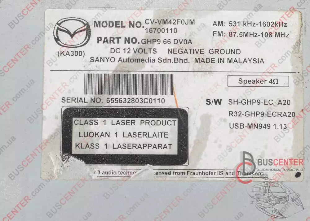 Автомагнитола Mazda CX5 GHP966DV0A