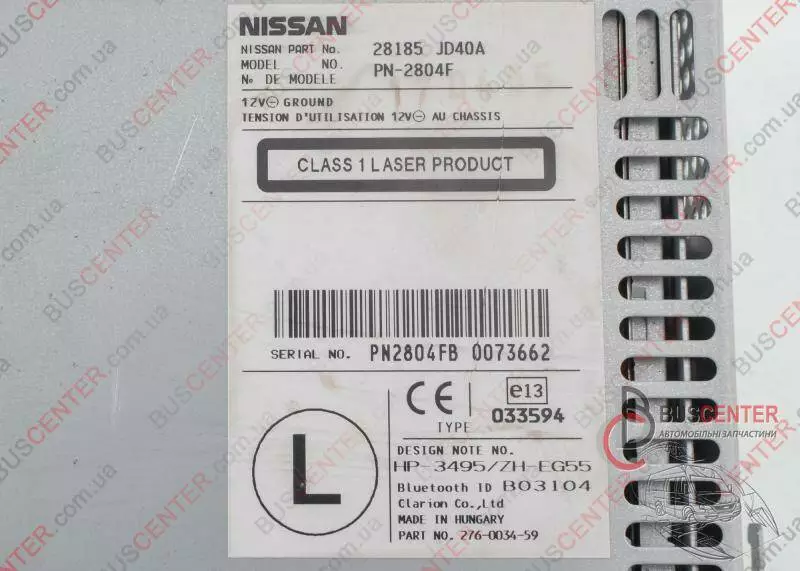 Автомагнитола MP3/ RADIO/ BLUETOOTH Nissan Qashqai 28185JD40A PN-2804F