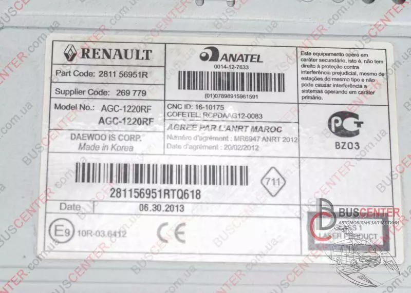Автомагнитола MP3/ RADIO/ BLUETOOTH/ USB Renault Trafic 281156951R 269779