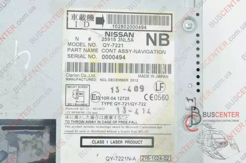 Автомагнитола / навигатор / бортовой компьютер / дисплей камеры (сенсорная панель) Nissan Leaf 259153NL5A QY-7221N-A