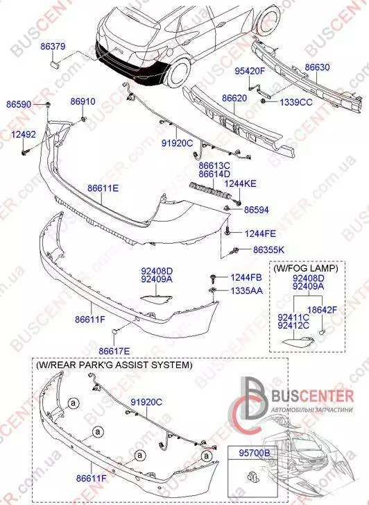 Бампер задний нижний (спойлер, губа, юбка, под парктроник) Hyundai IX 35 86612-2Y000 866122Y000