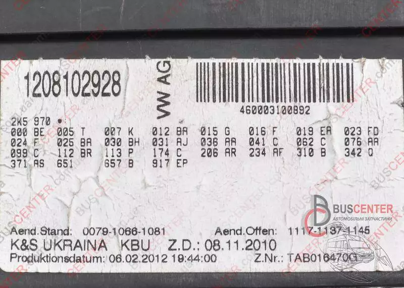 Блок предохранителей Volkswagen Caddy 2K5970