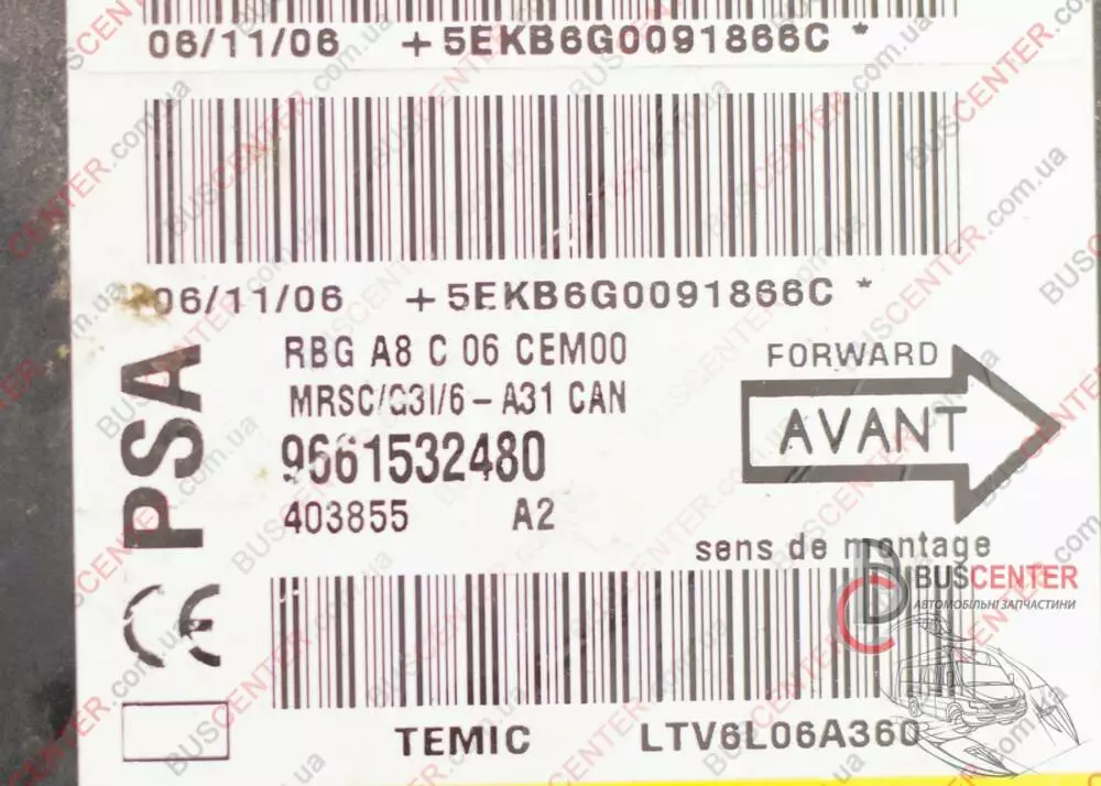 Блок управления AirBag Citroen C3 9661532480