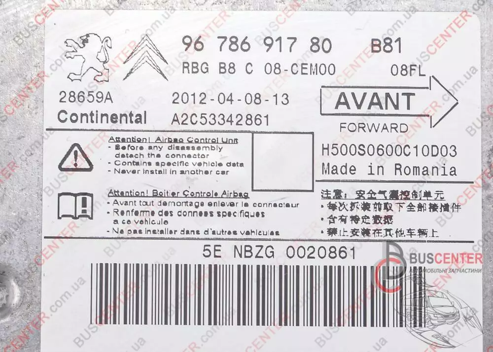 Блок управления AirBag Citroen DS 9678691780 A2C53342861