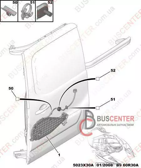 Чехол для проводов сдвижной правой двери Peugeot Partner 6559 NC 9665455780