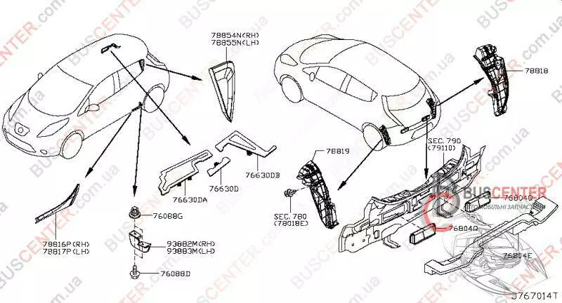 Дефлектор вентиляции кузова задний Nissan Leaf 768041HM0A 76804-1HM0A