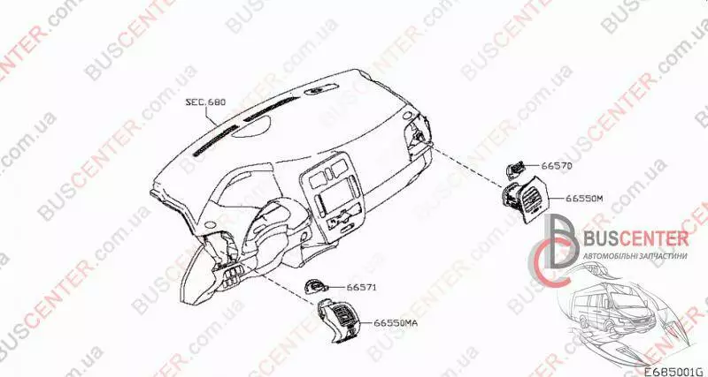 Дефлектор воздушный торпеды левый с накладкой (черный) (воздуховод, решетка) Nissan Leaf 687613NL0A 68761-3NL0A