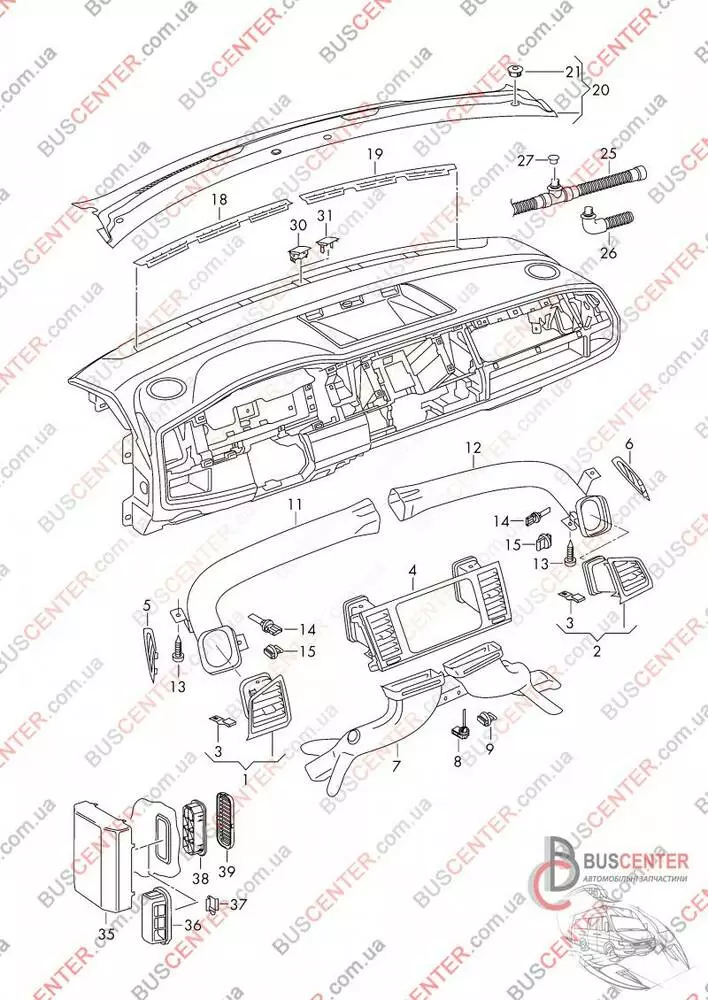 Дефлектор воздушный торпеды правый (черный) Volkswagen Transporter 7E1 819 204 G 7E1819204G