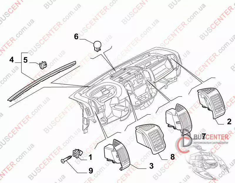 Дефлектор воздушный торпеды верхний левый (средний, центральный) Fiat Ducato 735535543 385812