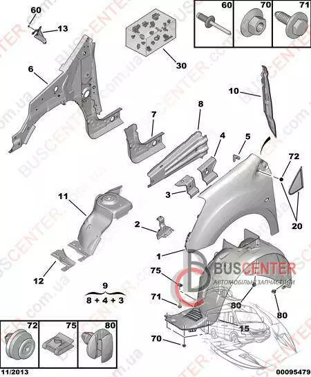 Декоративная накладка крыла левого Citroen Berlingo 9682179077 9015 EK