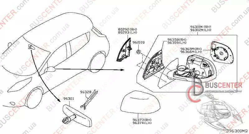 Декоративная накладка зеркала внутренняя левой двери (уголок, треугольник, заглушка) Nissan Leaf 802933NA0A 80293-3NA0A