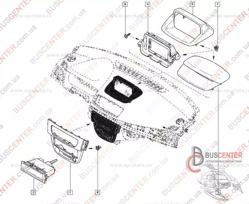 Детали панели (кронштейн крепления навигатора) Renault Kangoo 280388267R 280380578R