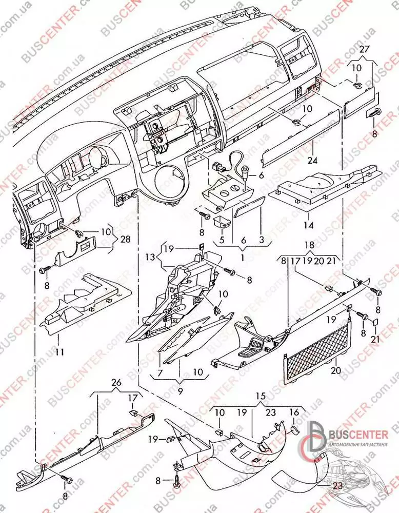 Детали панели Volkswagen Transporter 7E1858365