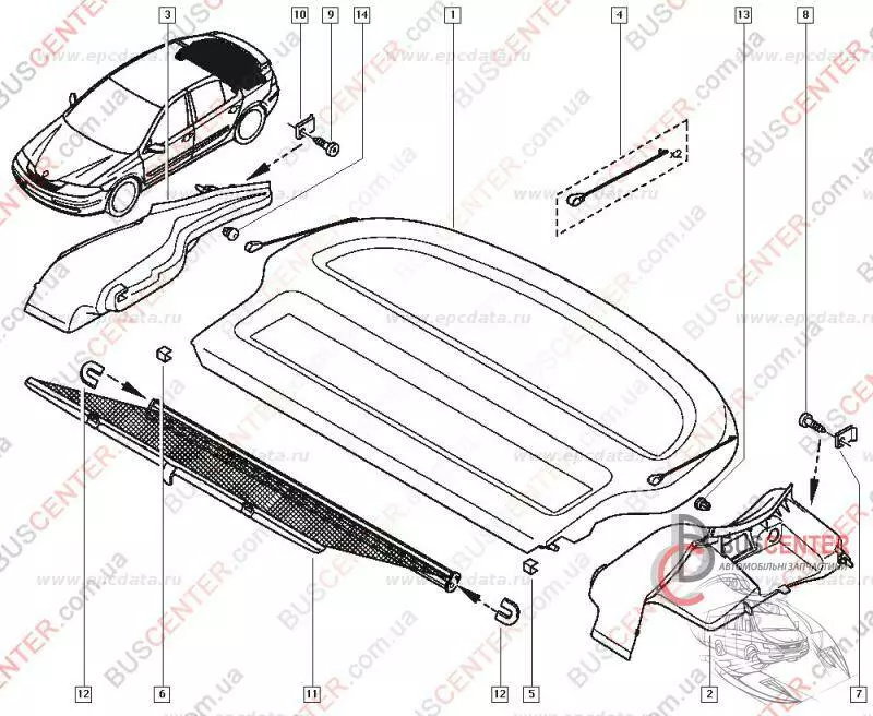 Детали салона (держатель задней полки правый) Renault Laguna 8200000357