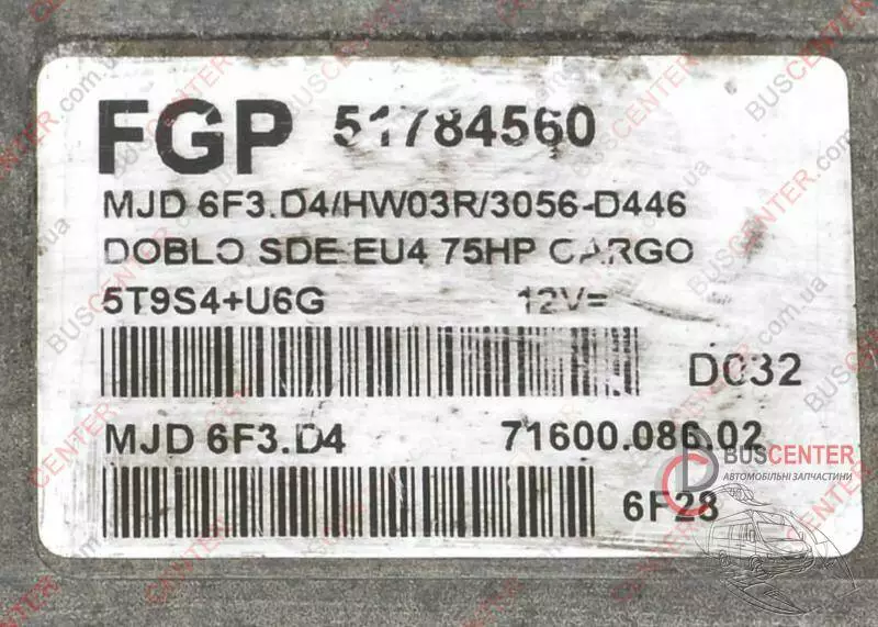 Электронный блок управления (ЭБУ) (комплект) Fiat Doblo 7160008602 51784560