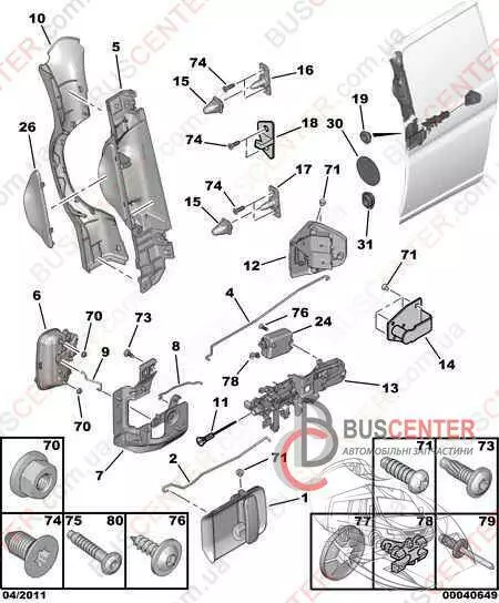 Электропривод замка двери боковой сдвижной правой (центральный замок) Citroen Berlingo 6615 14