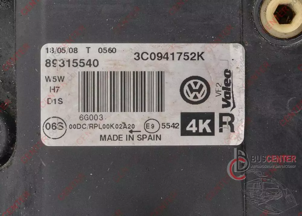 Фара передняя правая (линза, в сборе) Volkswagen Passat 3C0941752K 89315540