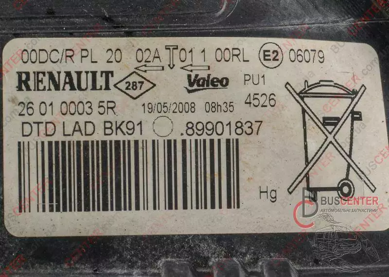 Фара передняя правая Renault Laguna 260100035R 89901837