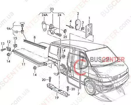 Фиксатор боковой правой сдвижной двери нижний Volkswagen Transporter 701843414