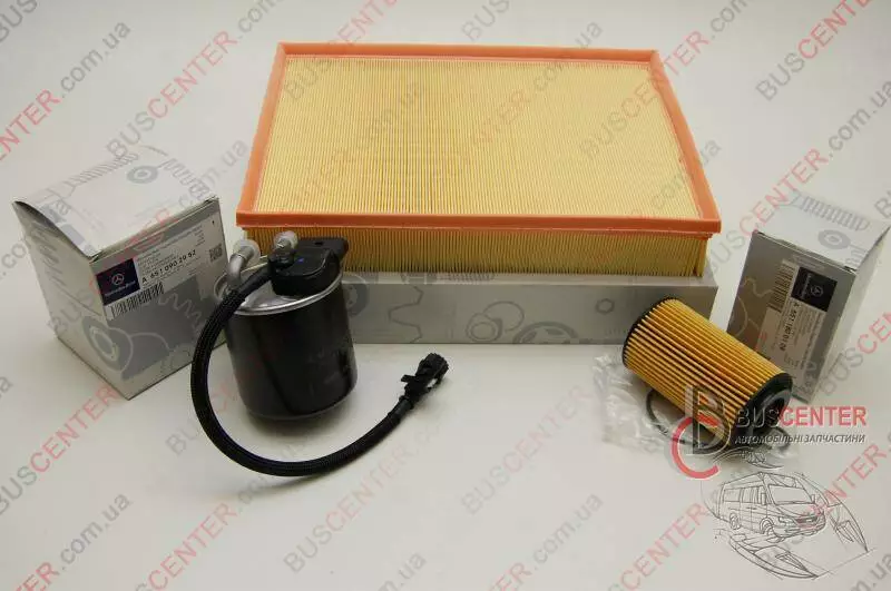 Фильтр воздушный A 000 090 37 51, фильтр масляный A 651 180 01 09, фильтр топливный 651 190 29 52.