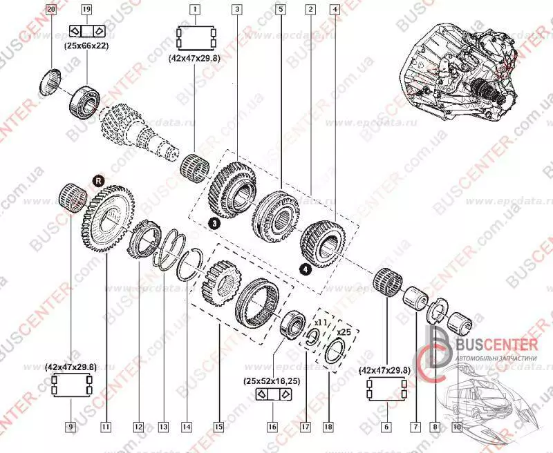 Игольчатый подшипник КПП 42x47x29.8 Renault Master 3226400QAD 32264-00QAD