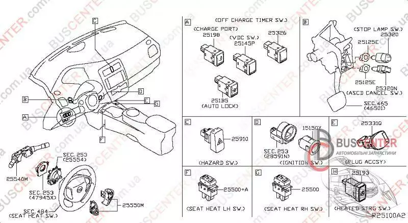 Кнопка аварийной сигнализации (включения аварийки) Nissan Leaf 252903NA0A 25290-3NA0A