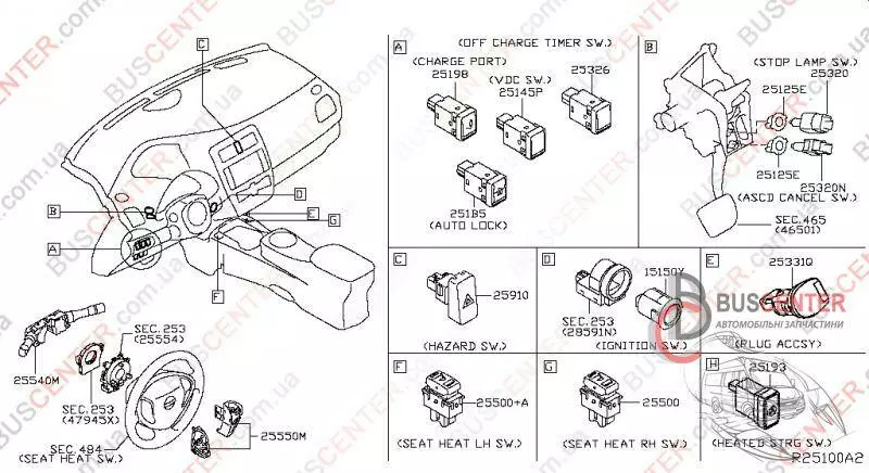 Кнопка отключения системы курсовой устойчивости (антизаноса, стабилизации) Nissan Leaf 251451KA0A 25145-1KA0A