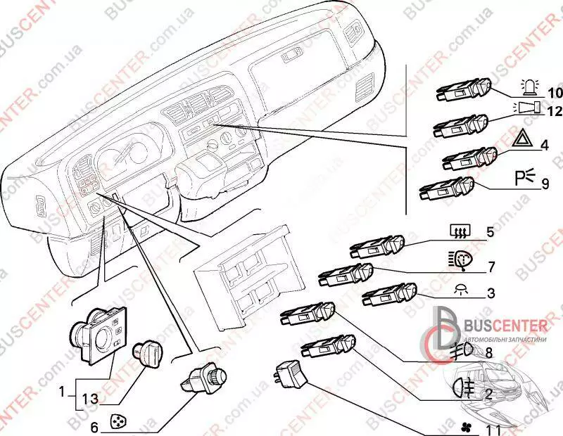 Кнопка включения освещения салона Fiat Ducato 1303508614