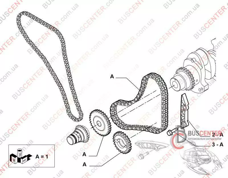 Комплект для замены ГРМ нижний (EURO 5 - цепь "короткая", звездочки, натяжитель, успокоители) Fiat Ducato 504294672