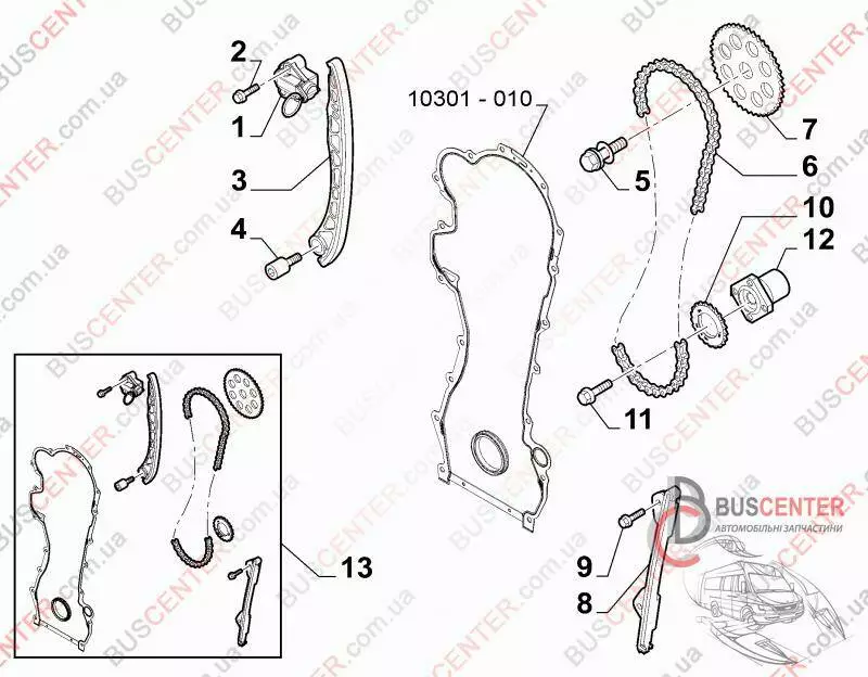 Комплект для замены ГРМ (цепь, звездочки, натяжитель, успокоители) Fiat Doblo 71776647 TCK6