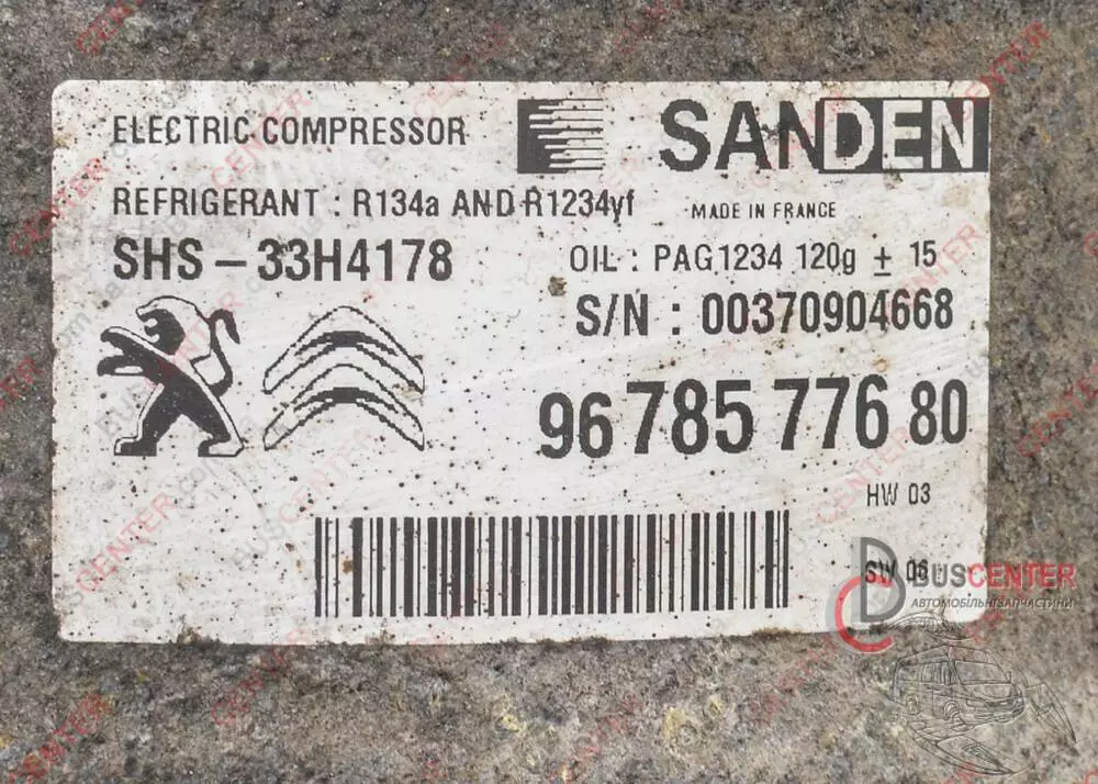 Компрессор кондиционера (B9 с 2015 года. electric, TYPEE II) Peugeot Berlingo 9678577680 SHS-33H4178