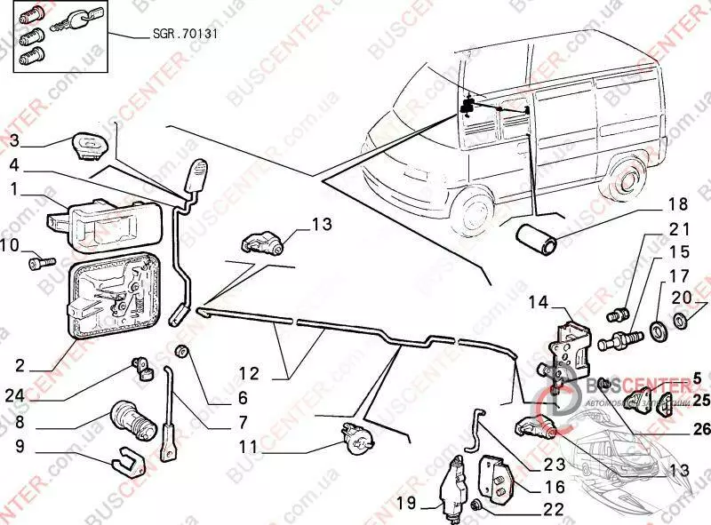 Корпус личинки замка боковой сдвижной правой двери