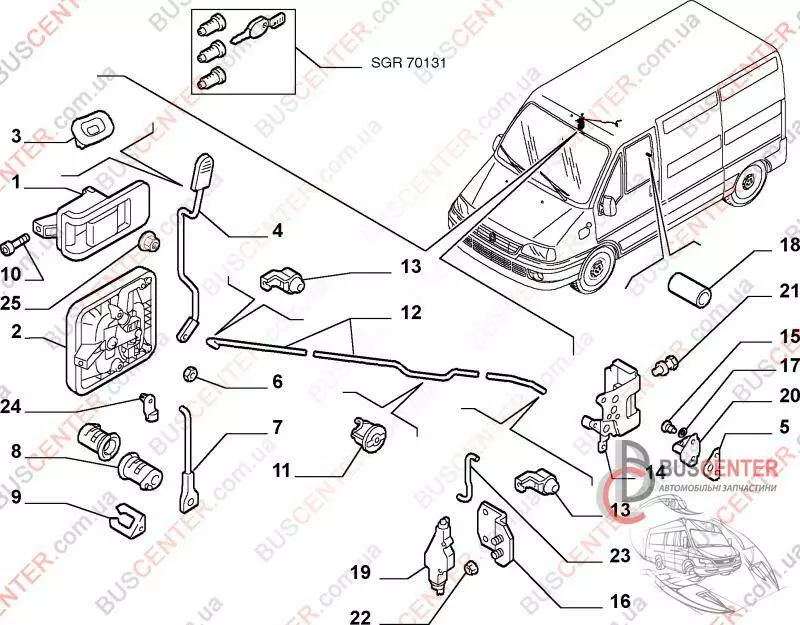 Корпус личинки замка боковой сдвижной правой двери