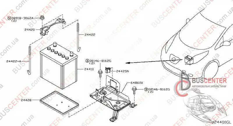 Кронштейн крепления аккумулятора (нижний, АКБ) Nissan Leaf 648603NA0A 64860-3NA0A