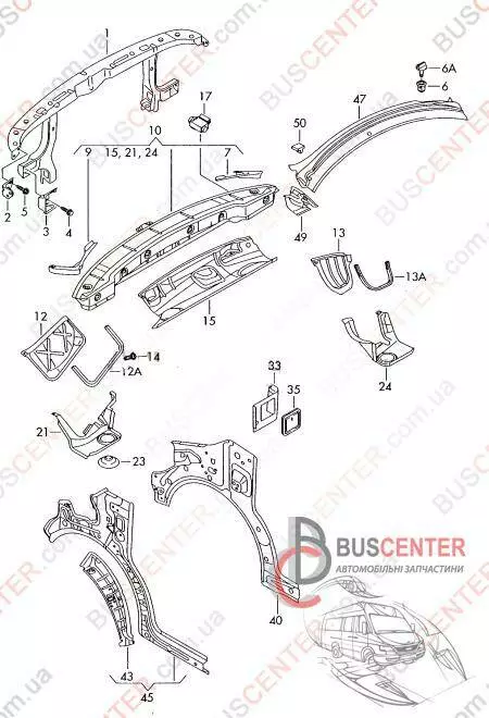 Кронштейн крепления радиатора с 2011 (крепления установочной панели передней - 1 шт) Volkswagen Transporter 7E0805731B