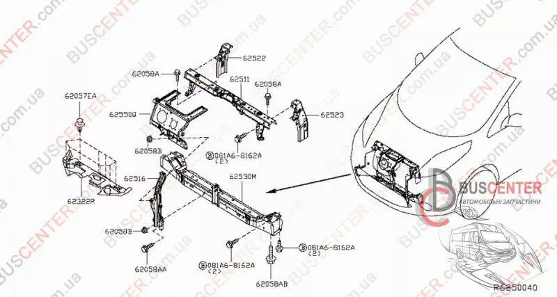 Кронштейн крепления рамки замка капота (планка центральной поддержки радиатора) Nissan Leaf 625E23NF0A 625E2-3NF0A