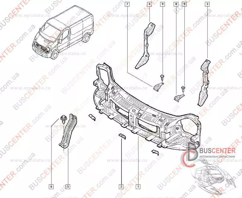 Кронштейн крепления установочной панели левый с 2007 Renault Trafic 7782004556