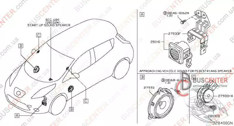 Кронштейн крепления звукового сигнала заднего хода Nissan Leaf 281693NA0A 28169-3NA0A