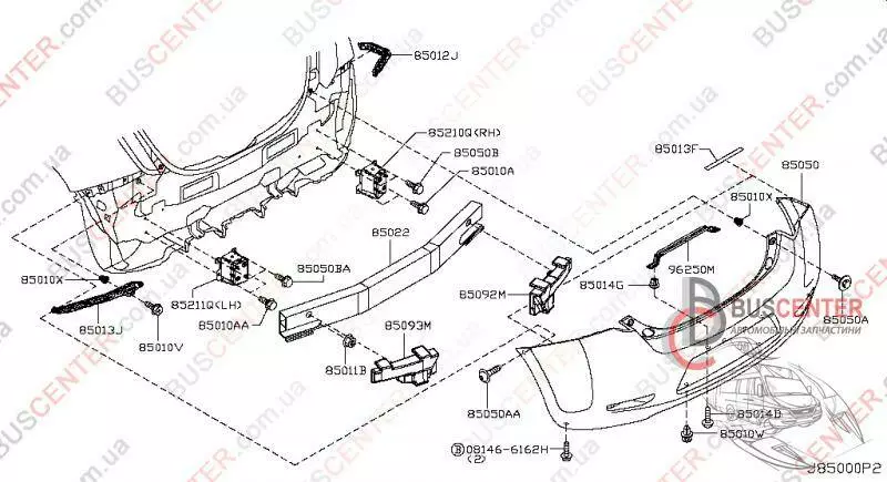Кронштейн усилителя заднего бампера левый (направляющая, крепление, клык) Nissan Leaf 852113NA0A 85211-3NA0A