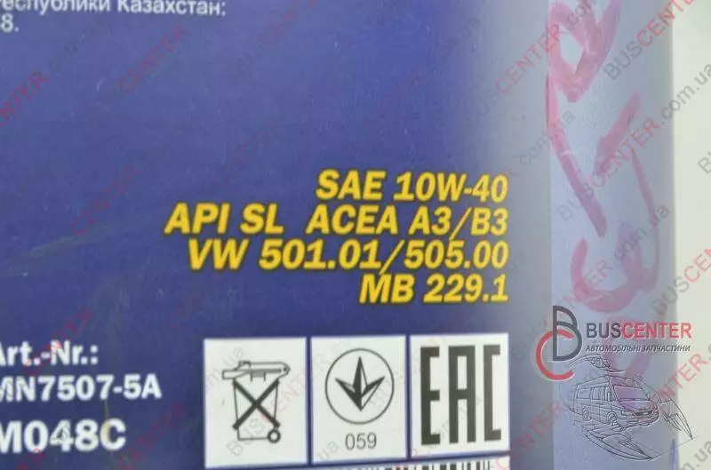 API SL ACEA A3/B3. VW 501.01/ 505.00. MB 229.1