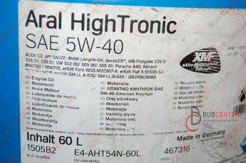 VW 502 00/ 505 00/ 505 01 ; MB 226.5/ 229.31/ 229.51.