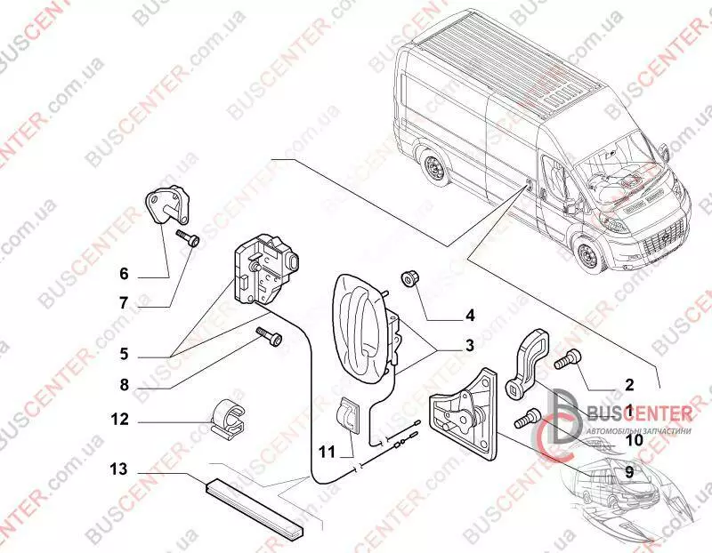 Механизм ручки двери боковой раздвижной правой