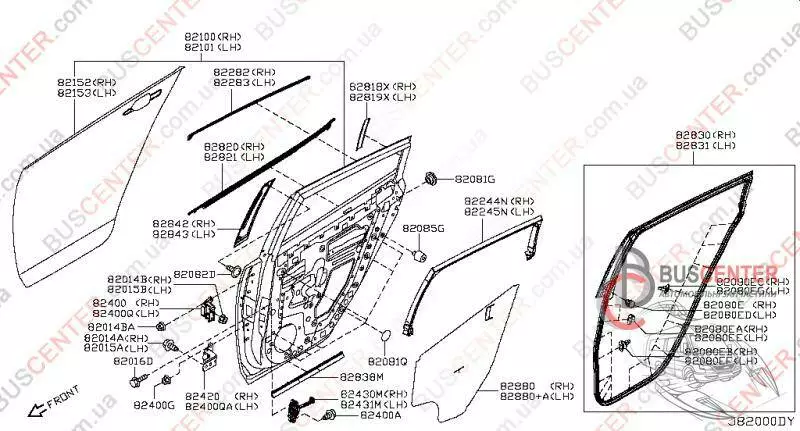 Молдинг двери задней правой (внутренняя накладка на стекло, рамка) Nissan Leaf 822D43NA0A 822D4-3NA0A