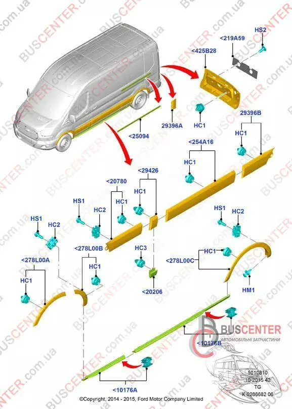 Молдинг левой боковой части (листва, накладка декоративная) Ford Transit BK31V29427ACW