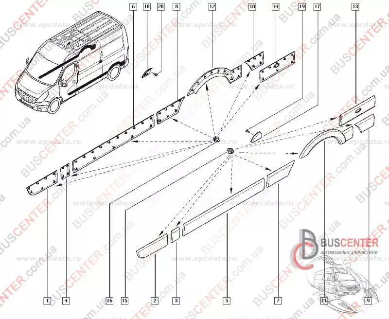 Молдинг правый/ левой боковой части средняя база (листва, накладка декоративная) Renault Master 768190129R 76827-00Q0A
