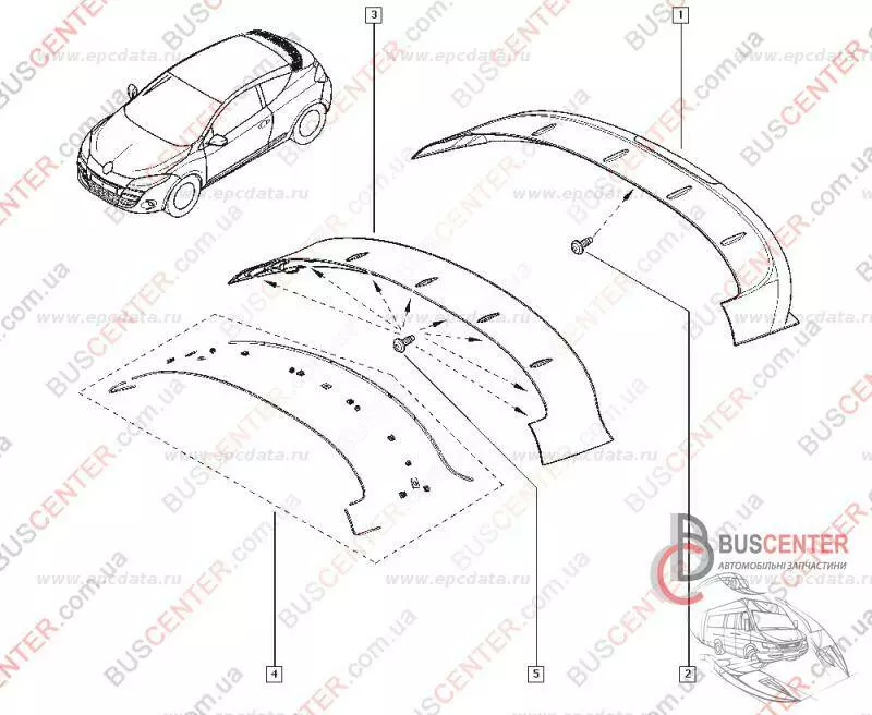 Накладка двери задней ляды (крышка/ спойлер, "купе") Renault Megane 960300005R 960401057R