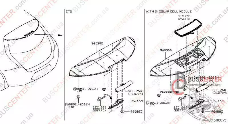 Накладка фонаря сигнала торможения задней ляды (дополнительного стоп сигнала) Nissan Leaf 16151X12G1 16151-X12G1